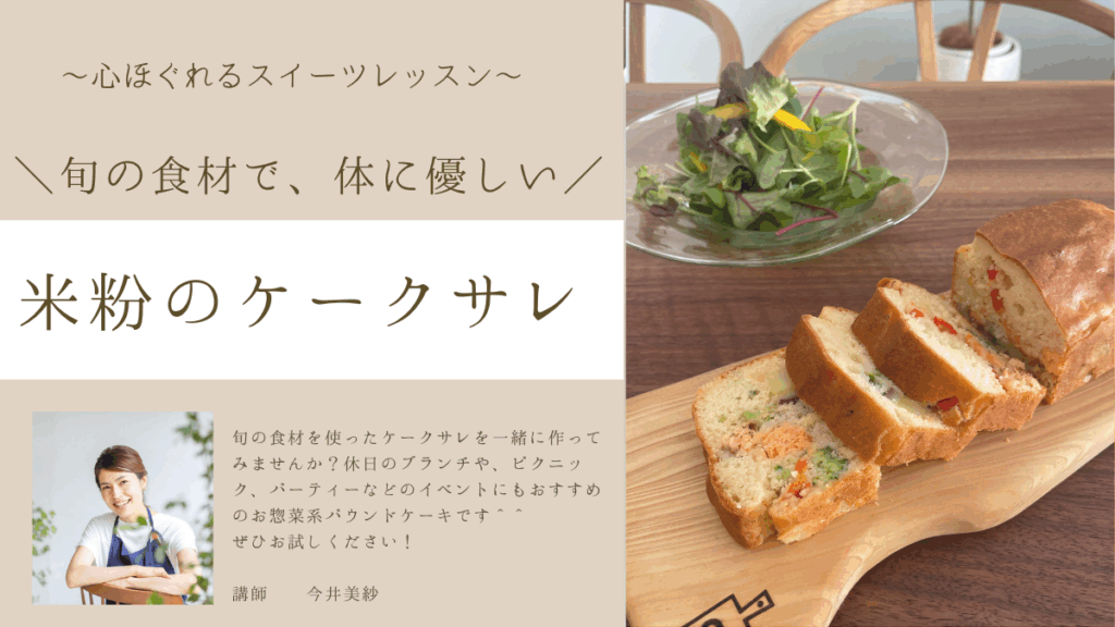 体に優しい米粉を使ったケーク・サレを作ります。シンプルな工程で、気軽に作っていただけます。塩味で、朝食やブランチにおすすめ!野菜の具材を変えることでいろんな味を楽しめます。